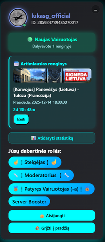 6.Prisijunk prie mūsų „Discord“ serverio – čia bendraujame, organizuojame konvojus ir dalinamės naujienomis.