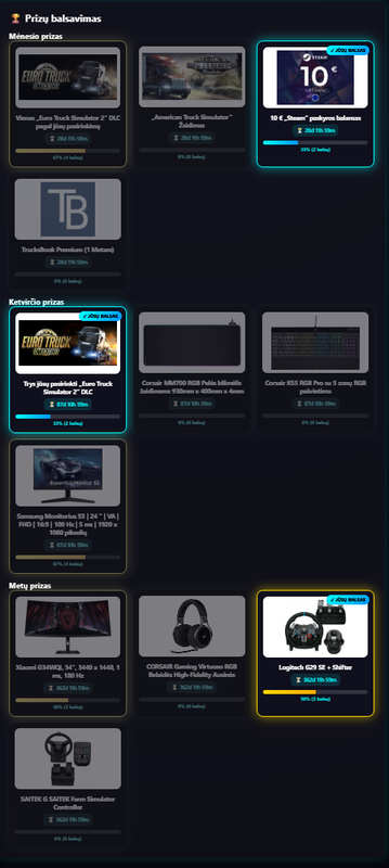 🏆 Rengiame daug įdomių eventų. Aktyviausi nariai gali būti apdovanojami: DLC, Premium TruckBook paskyra, prizais arba pakelti rangą kompanijoje.