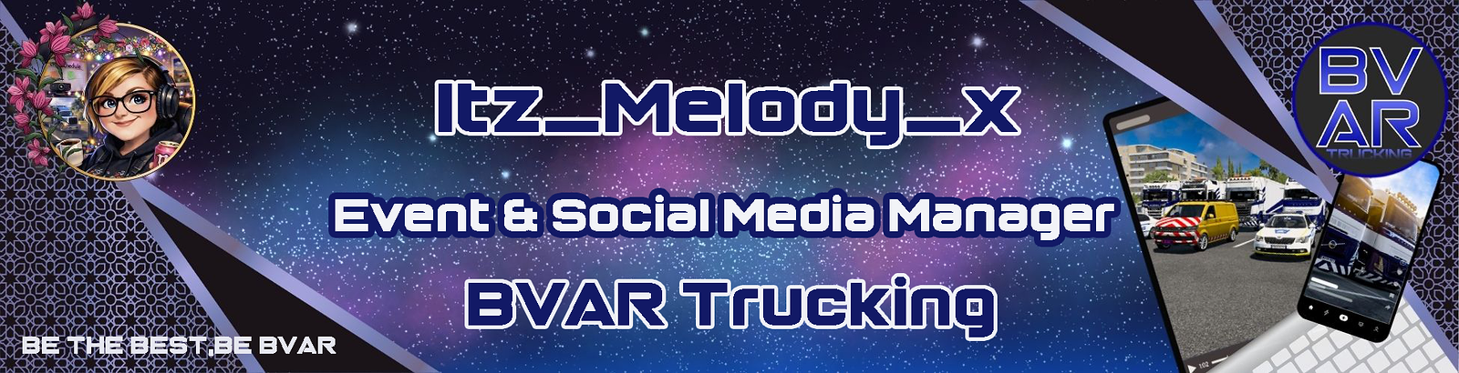 A wild Melody, often found on the roads of ETS2 with BVAR Trucking, as part of the event and social media management team, as well as a Discord Moderator. Im also part of the TruckersMP Event Team.